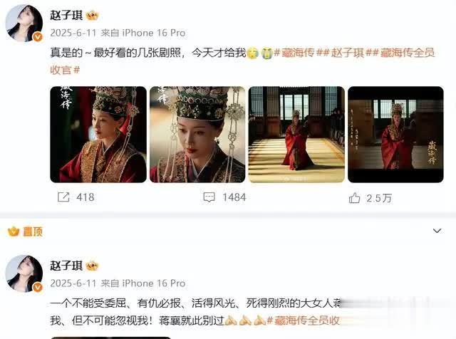 可就算受了委屈,赵子琪全程没卖惨没撕节目组,4月11日凌晨发博干脆利落,不难过不回头,转头就置顶新剧《藏海传》的宣传。