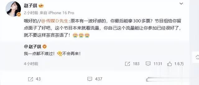 或许是赵子琪觉得网友的话太刺耳,直接在某博连发五六条文章硬钢浪姐节目组,不卑不亢那才叫一个硬气。